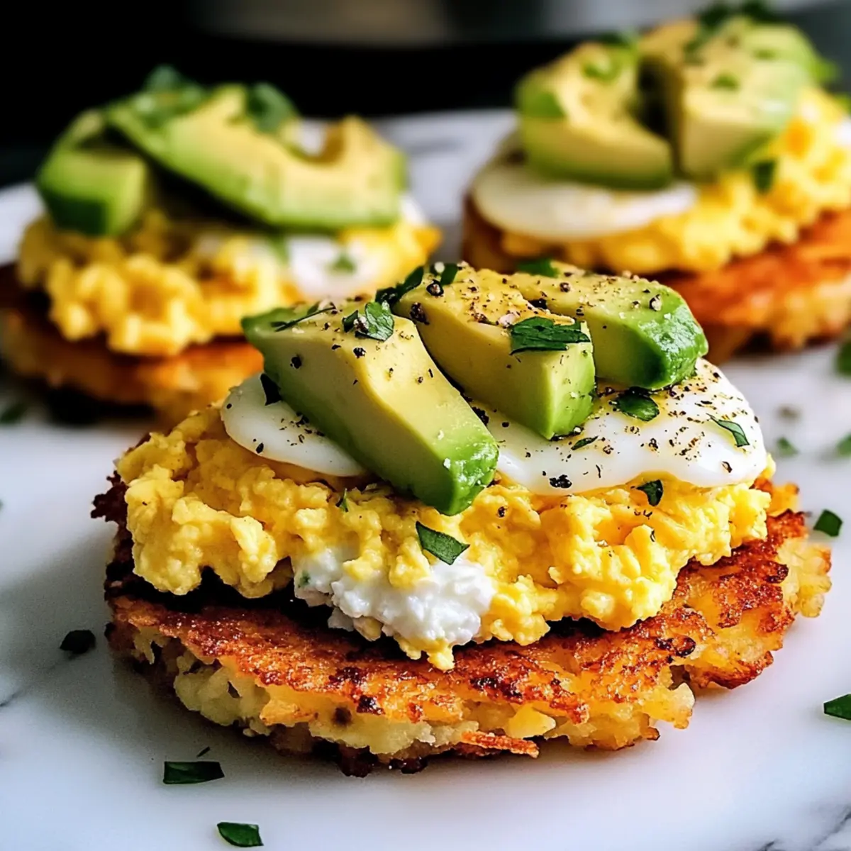 These Loaded Hash Browns with Scrambled Eggs are perfect for meal prep enthusiasts! To save time on busy mornings, you can prepare the hash browns and the scrambled eggs up to 24 hours in advance. Simply cook the hash browns until golden and crispy, then let them cool before refrigerating them in an airtight container. For the scrambled eggs, cook them until fluffy, let them cool, and store in another airtight container. When you’re ready to serve, reheat both components in a skillet over low heat until warmed through. Add fresh mashed avocado just before serving to maintain its vibrant color and creamy texture, ensuring your breakfast remains just as delicious!