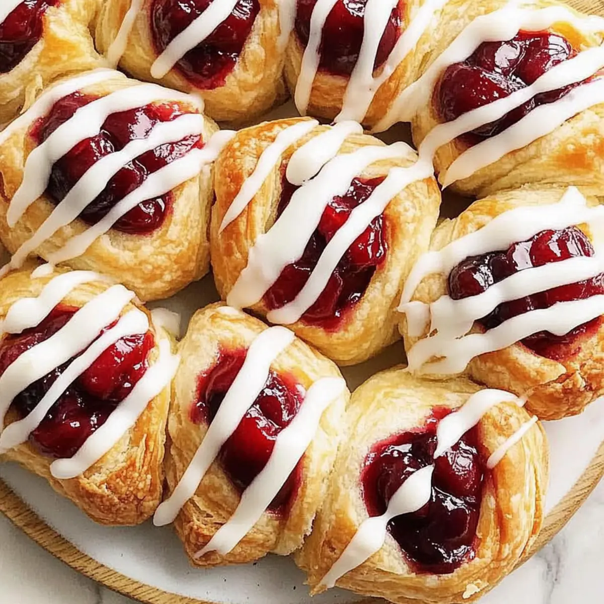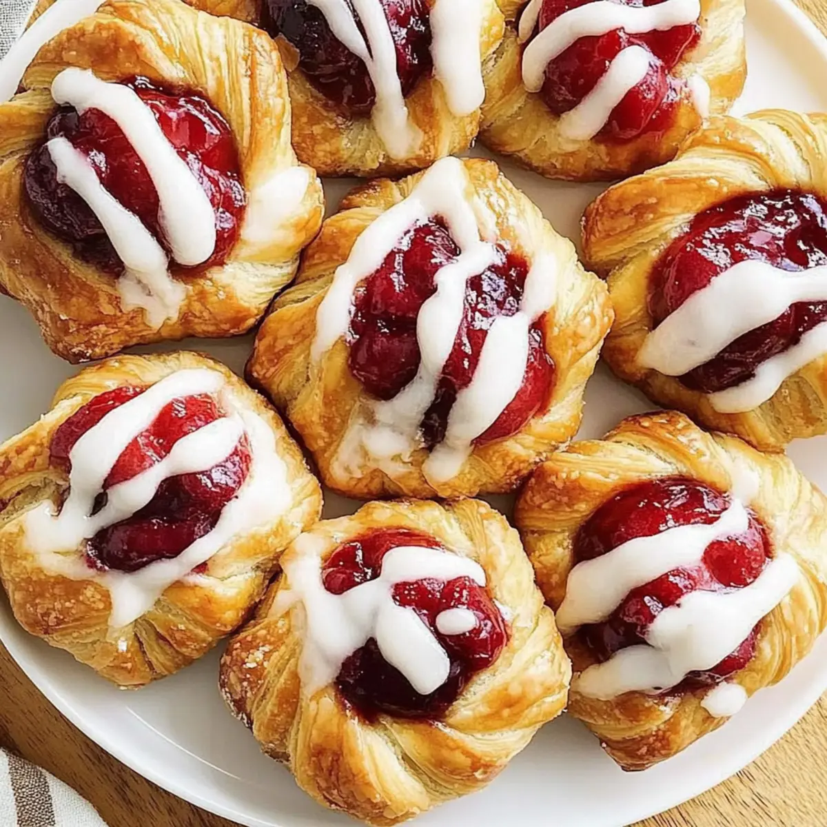 Homemade Cherry Danishes are simply irresistible. Quick Preparation: With an overnight dough rise, you can whip these up without spending your whole morning in the kitchen. Delightful Flavor: The combination of sweet cherry filling and creamy icing creates a mouthwatering treat for any occasion. Versatile Filling Options: Swap cherries for blueberries or cream cheese for new flavor adventures! Golden and Flaky: Each bite offers a satisfying crunch, melting into soft sweetness. Plus, they make the perfect pair with a hot cup of coffee—just like at grandma’s! Enjoy the nostalgia and taste the magic in every bite!