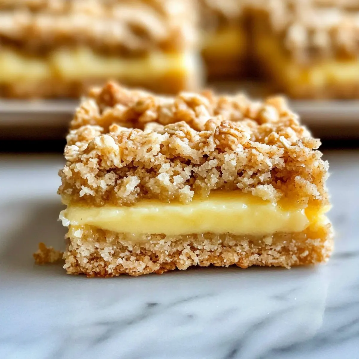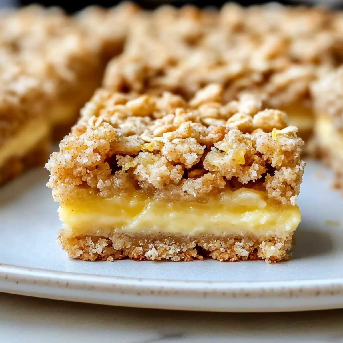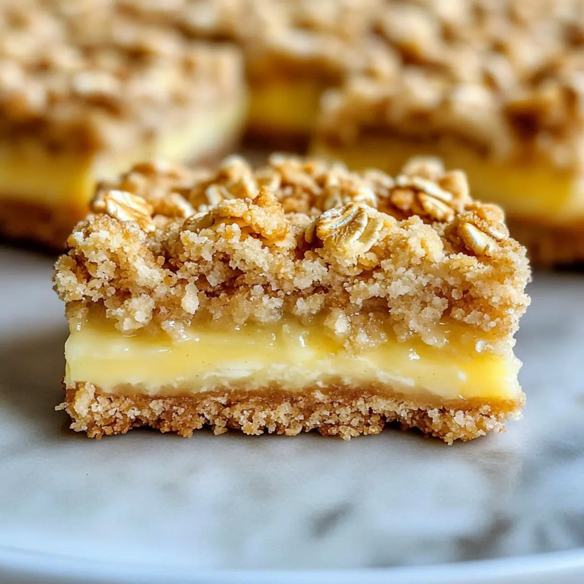 Delightful Lemon Oatmeal Crumble Bars with a buttery crust and zesty lemon filling, a perfect treat for any occasion.