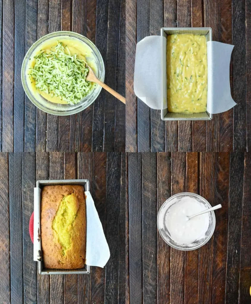 2. Add the buttermilk, vanilla extract, grated zucchini, lemon zest, and lemon juice. Mix well to combine all the flavors.
