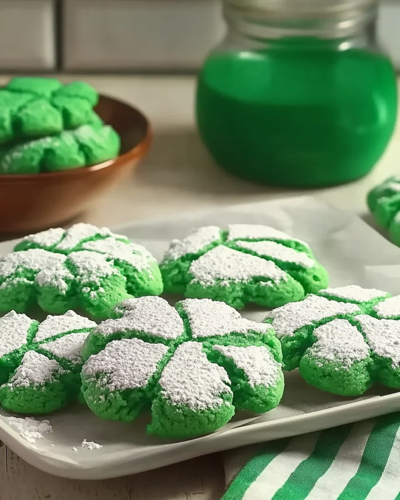 These festive crinkle-style cookies bring a burst of color and a sweet taste of tradition to your St. Patrick’s Day celebrations. Soft, chewy, and coated in a crackled sugary finish, these cookies evoke memories of joyful family kitchens and holiday magic—perfect for baking with kids or sharing with friends.