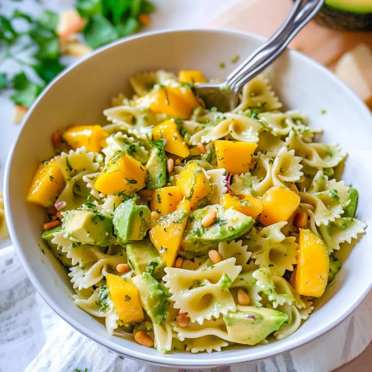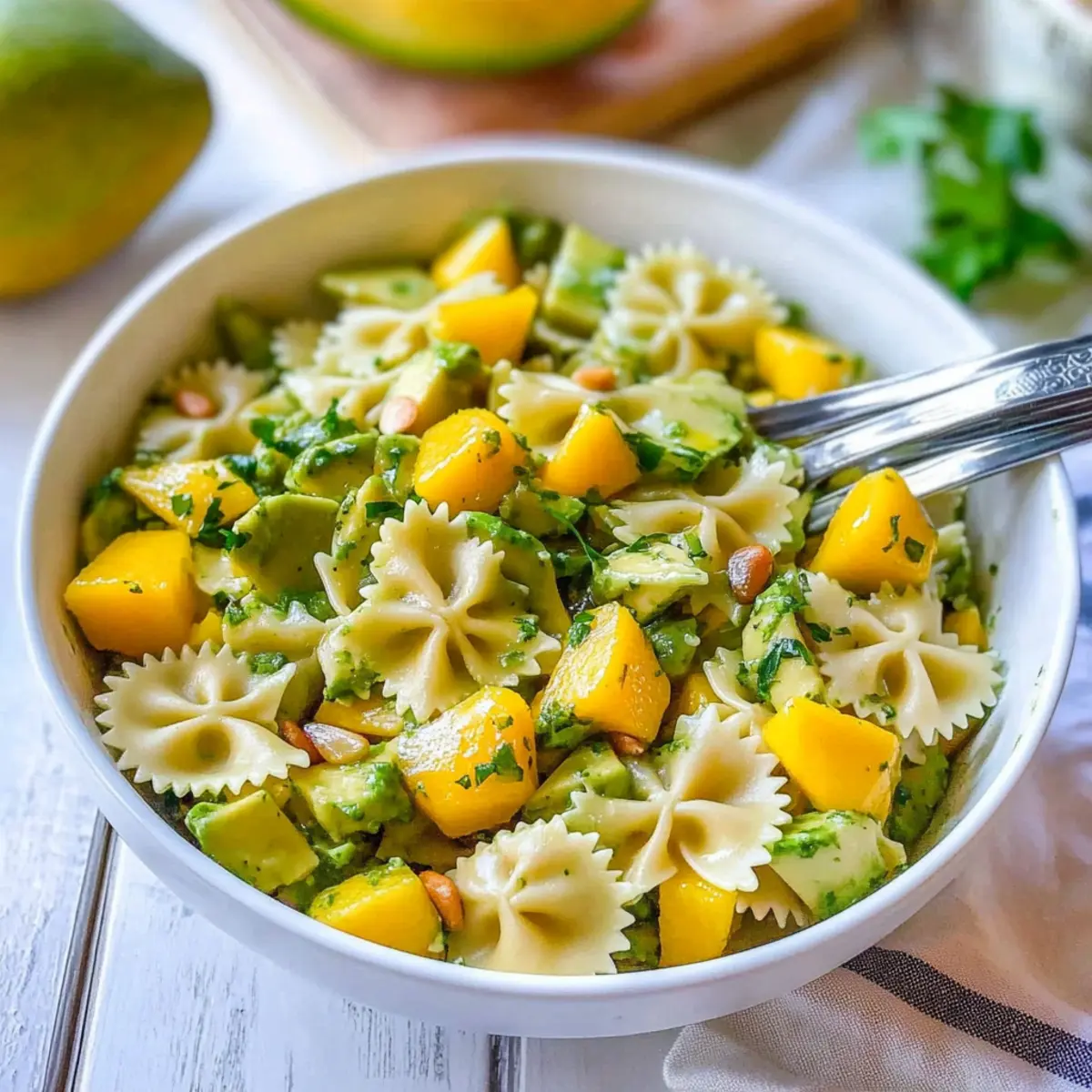 Discover a vibrant Mango Avocado Pasta Salad packed with tropical flavors, ready in just 20 minutes. A perfect vegan and gluten-free dish for any occasion.