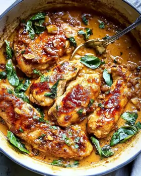 Finally, garnish your Marry Me Chicken with fresh basil leaves before serving. This adds a pop of color and freshness. Serve it hot, and watch as your loved ones swoon over this delightful dish!
