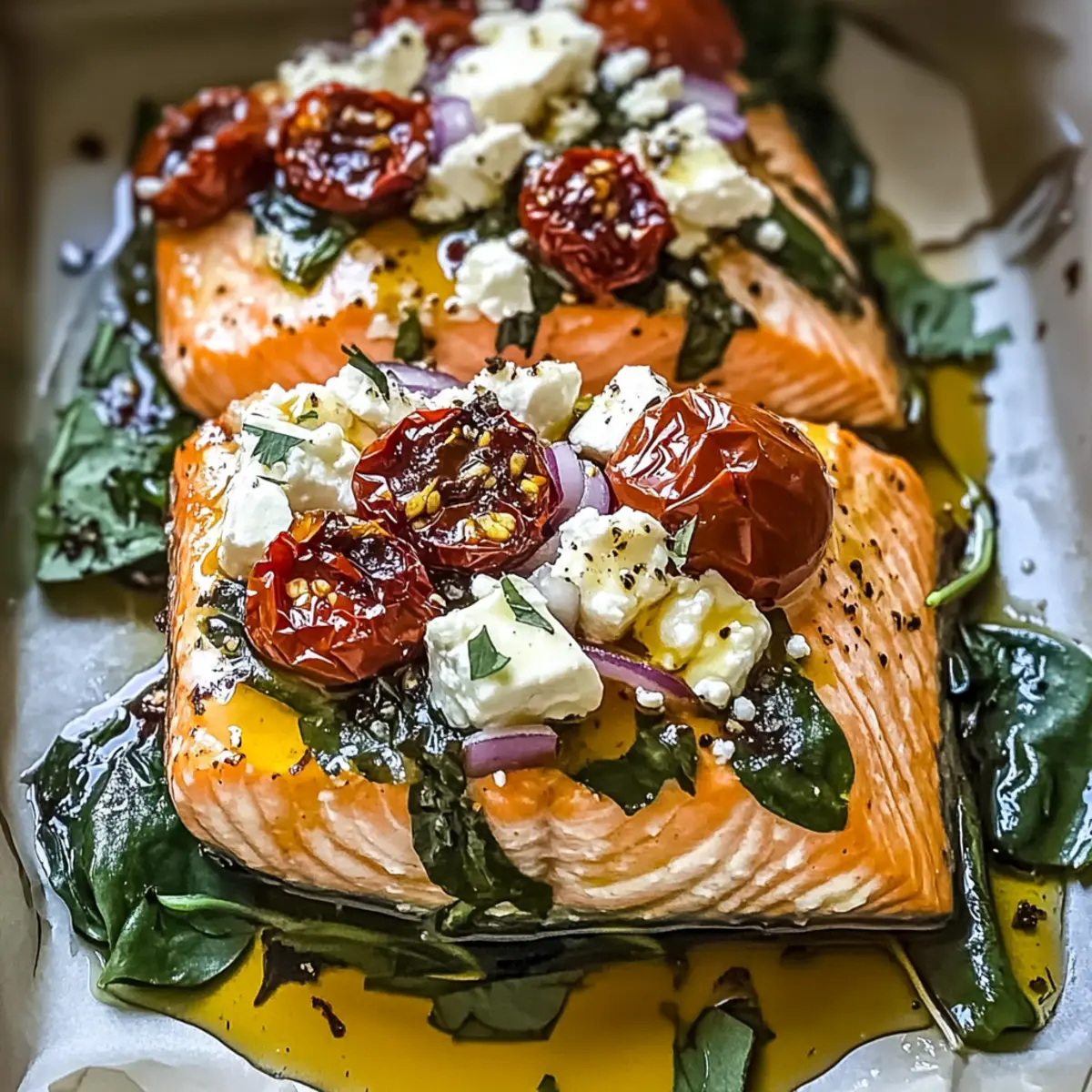 Customize Toppings: Feel free to experiment with variations! Swap feta for goat cheese or add olives for a unique twist on your Mediterranean Baked Salmon.