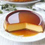 Run a knife around the edges of the flan to loosen it. Place a large plate over the dish and quickly flip it to release the flan. The caramel will flow over the top. Slice and serve.