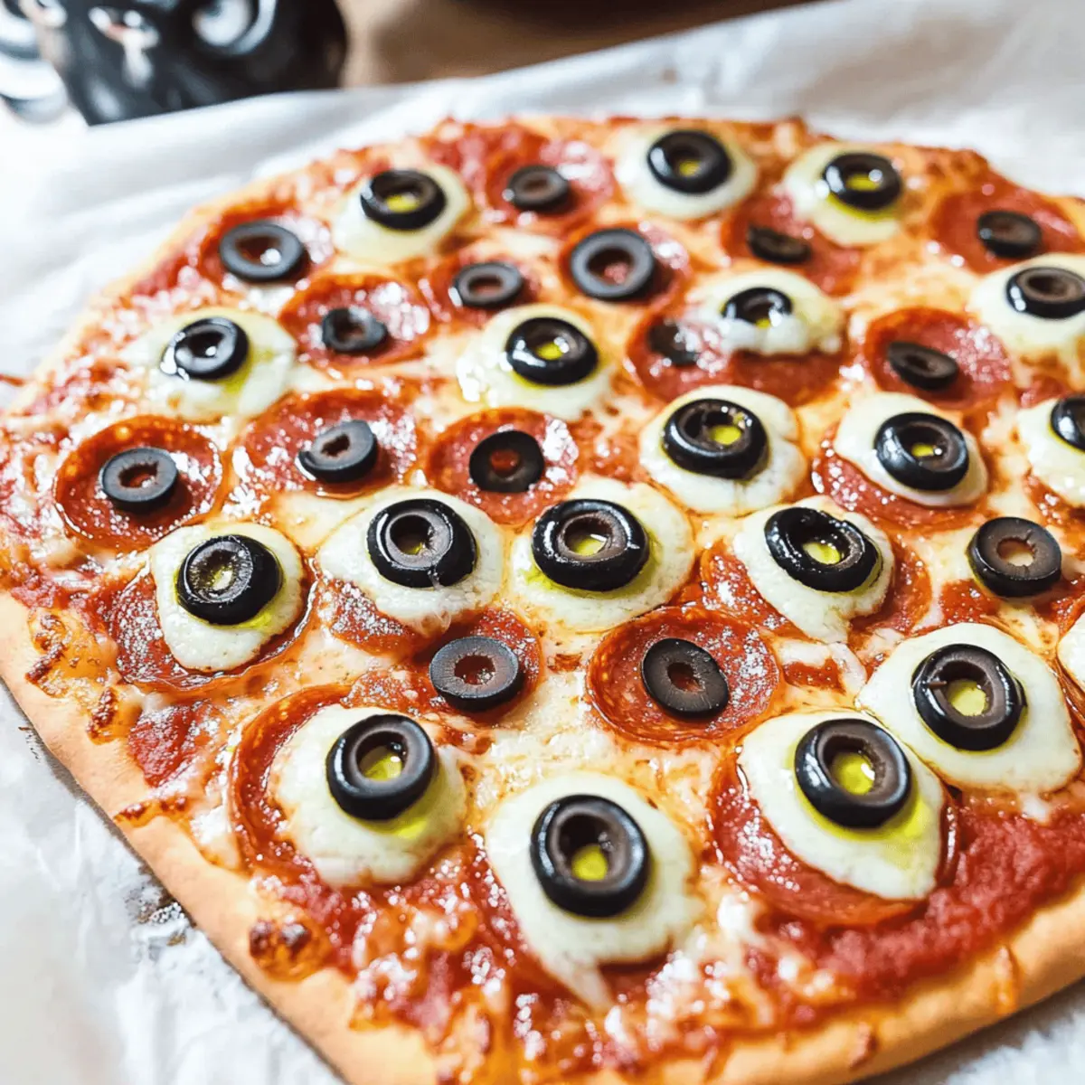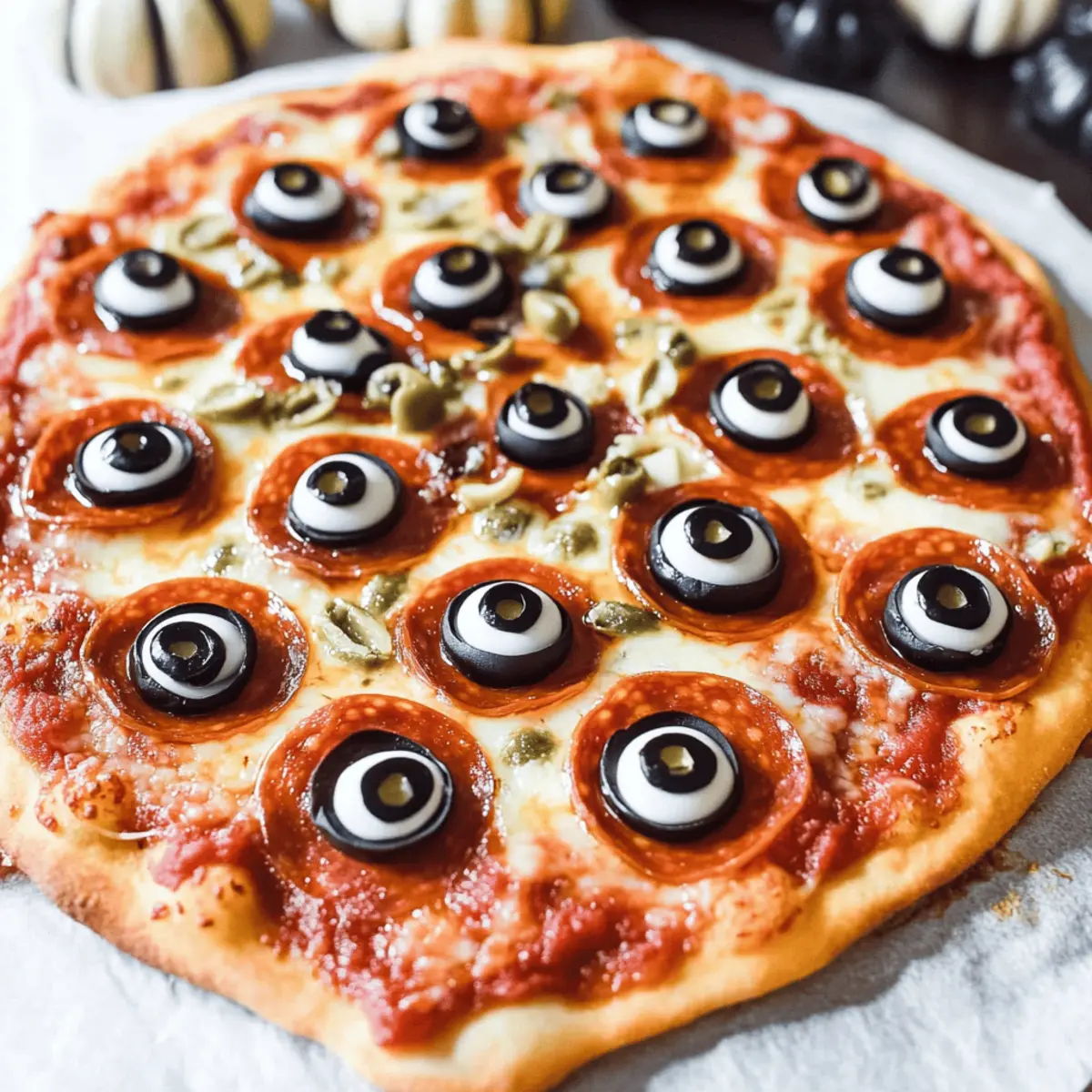 Pepperoni Slices – Creates a savory, meaty flavor that forms your ‘eyeballs’; consider turkey or plant-based pepperoni for a lighter option.