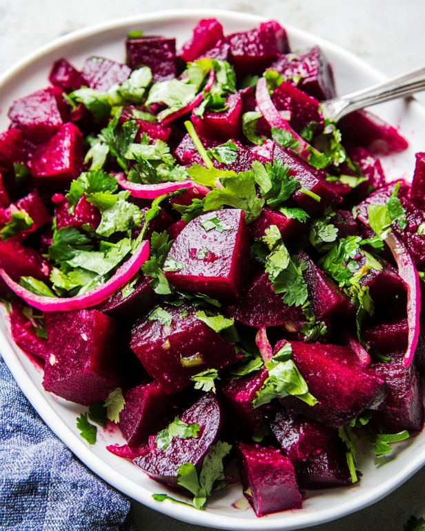 In conclusion, the Moroccan Beet Salad with Citrus Dressing is a vibrant and nutritious dish that brings a taste of North Africa to your table. With its beautiful colors and delightful flavors, this salad is not only a feast for the eyes but also a healthy option for any meal. The combination of roasted beets, quinoa, and feta cheese creates a satisfying texture, while the citrus dressing adds a refreshing zing.