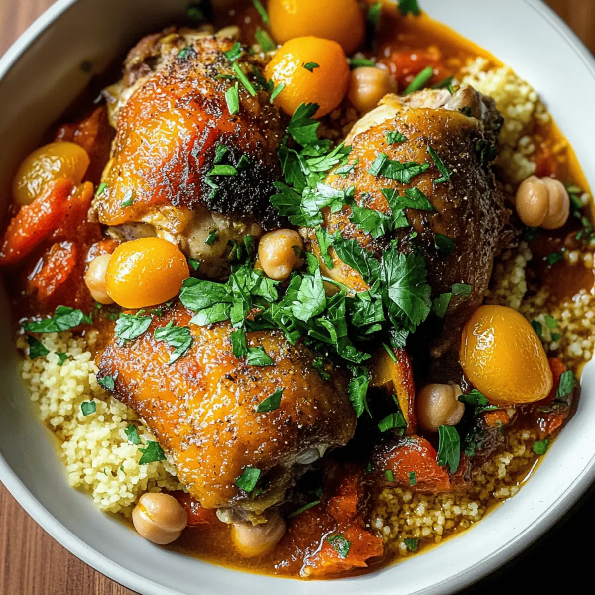 Deglaze for Depth: After browning the chicken, be sure to deglaze the pot with chicken broth to lift those flavorful bits stuck at the bottom—this adds great depth to your Moroccan Chicken Stew.