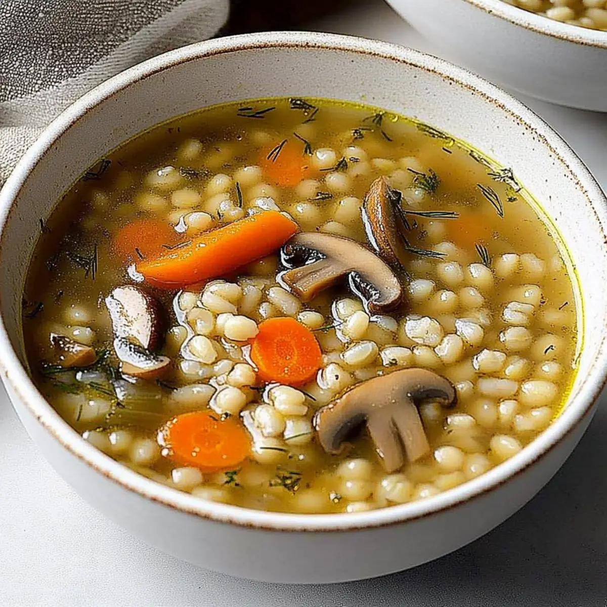These Easy Mushroom Barley Soup preparations are perfect for busy weeknights and make your meal planning a breeze! You can chop and sauté the mushrooms and garlic up to 24 hours in advance; simply refrigerate them in an airtight container to maintain their flavor. The pearl barley can also be cooked ahead of time and stored in the refrigerator for up to 3 days. When you’re ready to serve, combine the sautéed mixture with the broth and barley, then follow the remaining cooking steps. You’ll find that this method allows you to enjoy the same delicious warmth of a freshly made soup with a fraction of the time—ideal for any hectic evening!