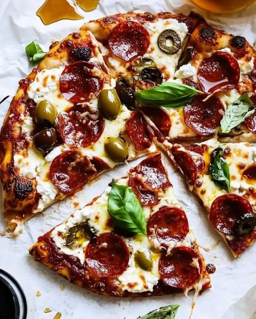 Pizza is a beloved dish around the globe, and this recipe adds a fun twist to the traditional pepperoni pizza. The creamy ricotta cheese provides a rich texture, while the spicy honey adds a kick that balances the savory elements perfectly. Whether you’re hosting a game night, a family dinner, or just craving a slice of something special, this pizza is sure to impress.