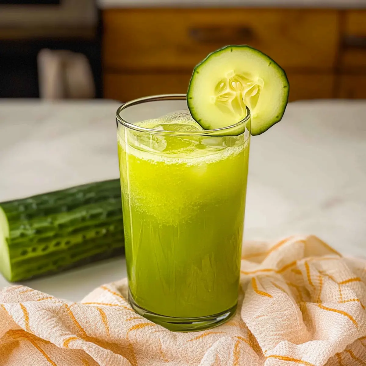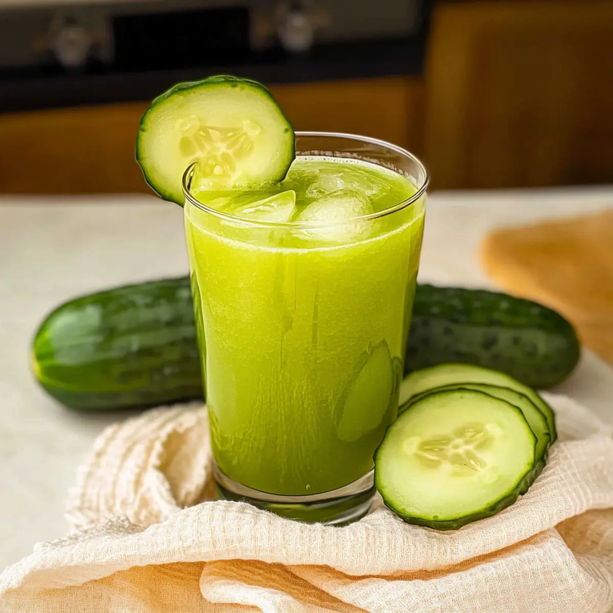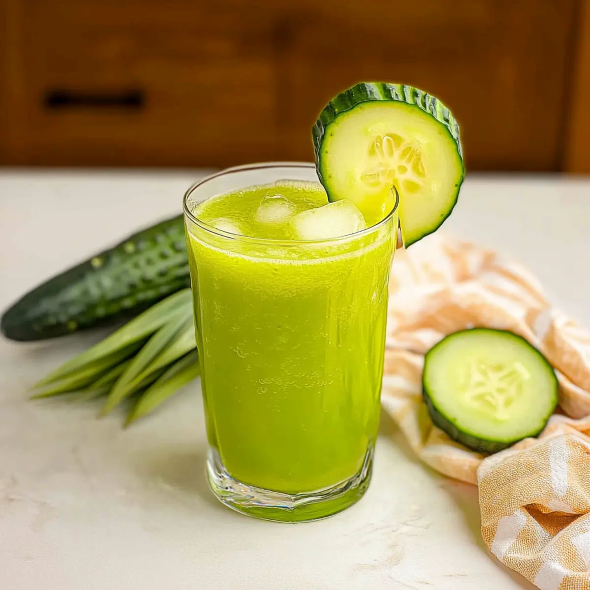 - Step 5: Serve and Garnish. Pour the juice over ice and garnish with a slice of cucumber on the rim of each glass.