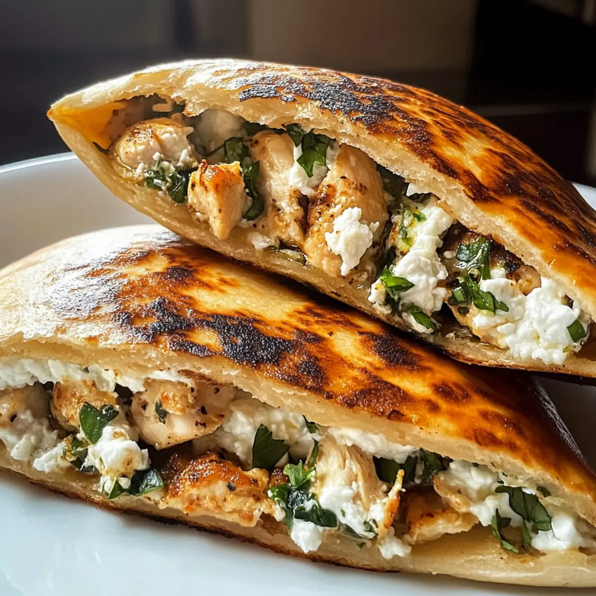 Heat a generous amount of olive oil in a non-stick skillet over medium heat until shimmering. Once the oil is hot, carefully place the stuffed pitas into the skillet without crowding them too much. Cook for 3-4 minutes on each side until they turn golden brown and crispy, creating an enticing aroma that fills your kitchen. This crispy exterior is what makes the Pita with Chicken & Feta so delectably inviting.