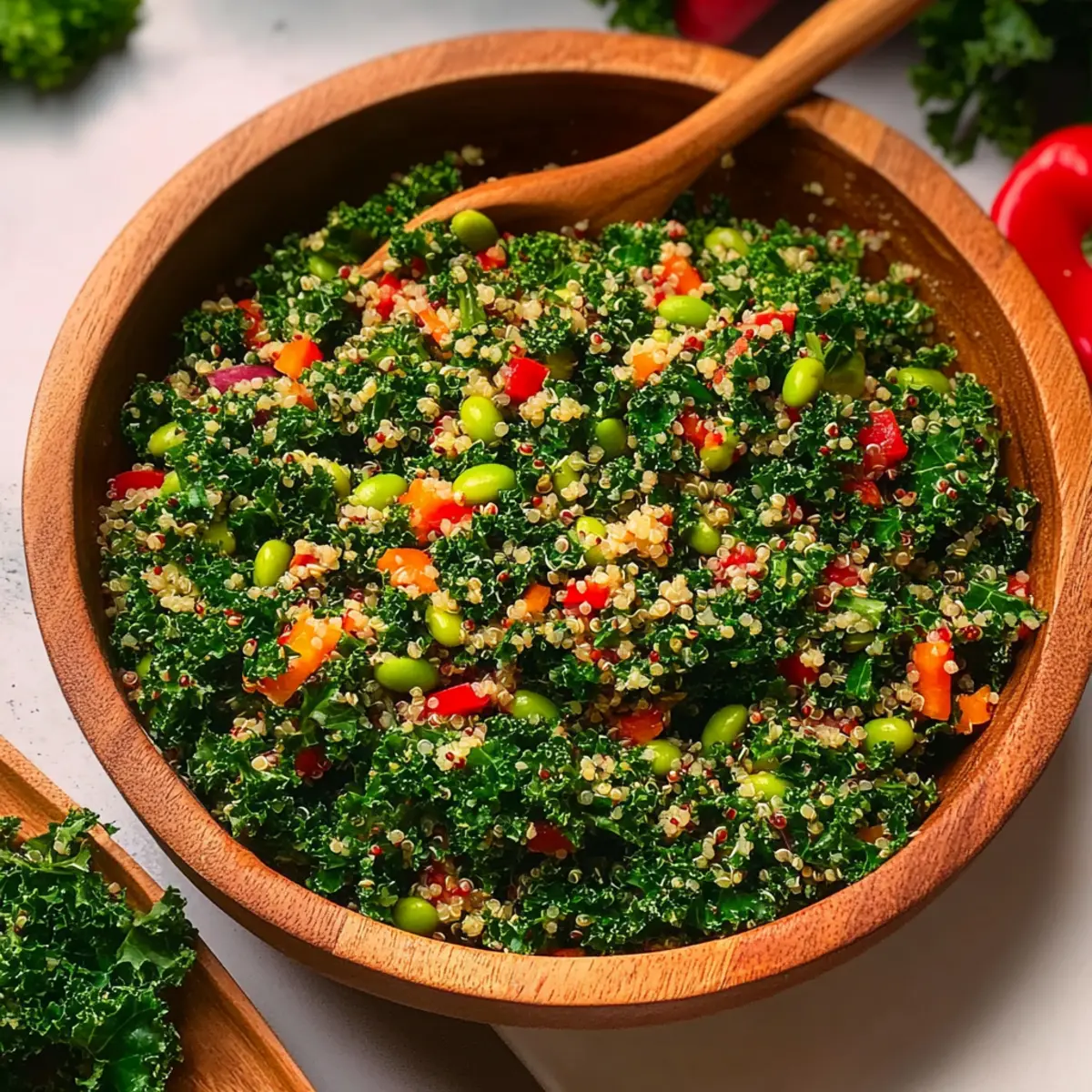 Presentation: For optimal looks and taste, add fresh toppings like avocado or nuts just before serving your vibrant Rainbow Kale Quinoa Salad.
