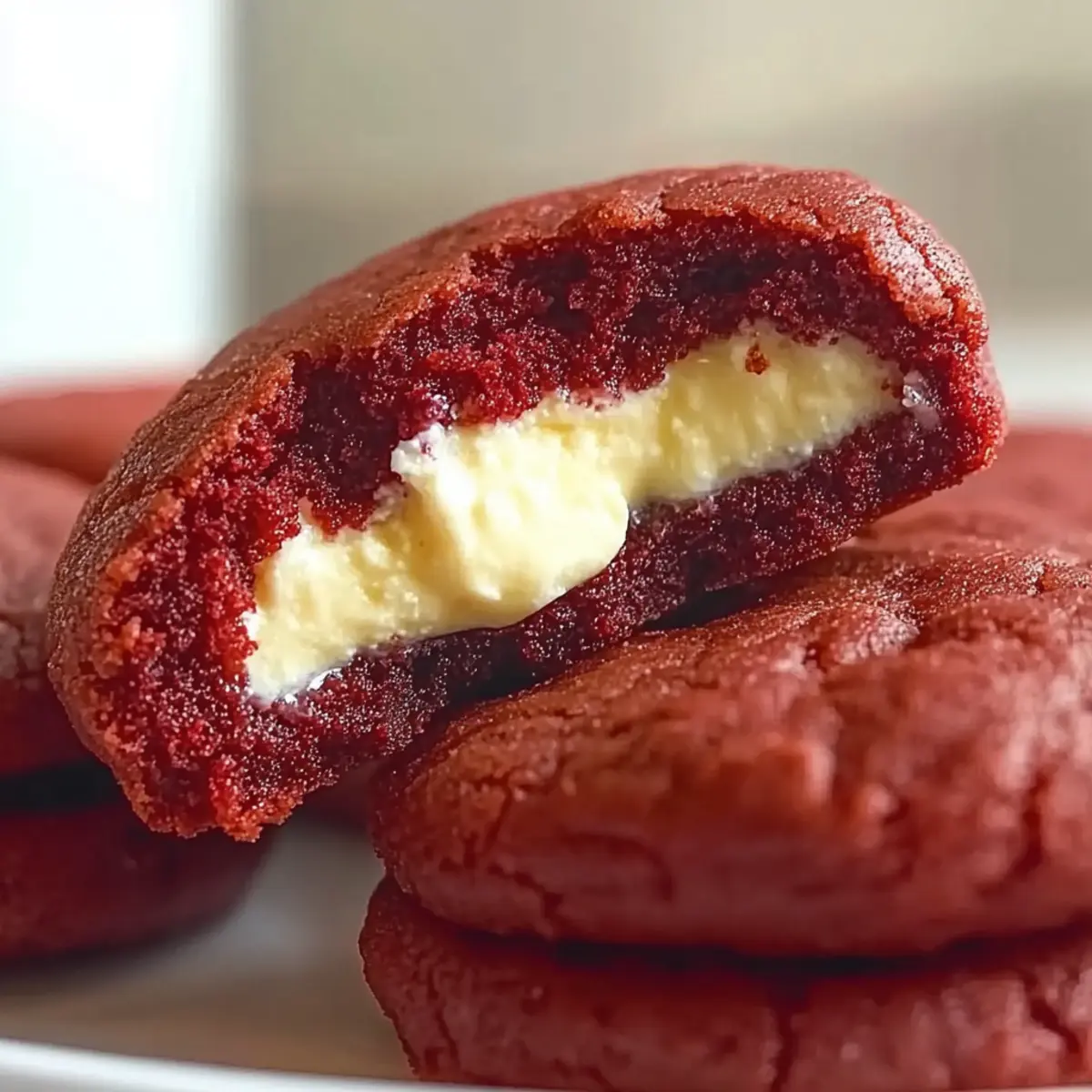 These Red Velvet Cheesecake Stuffed Cookies are a perfect combination of indulgence with a creamy center, ideal for any occasion.