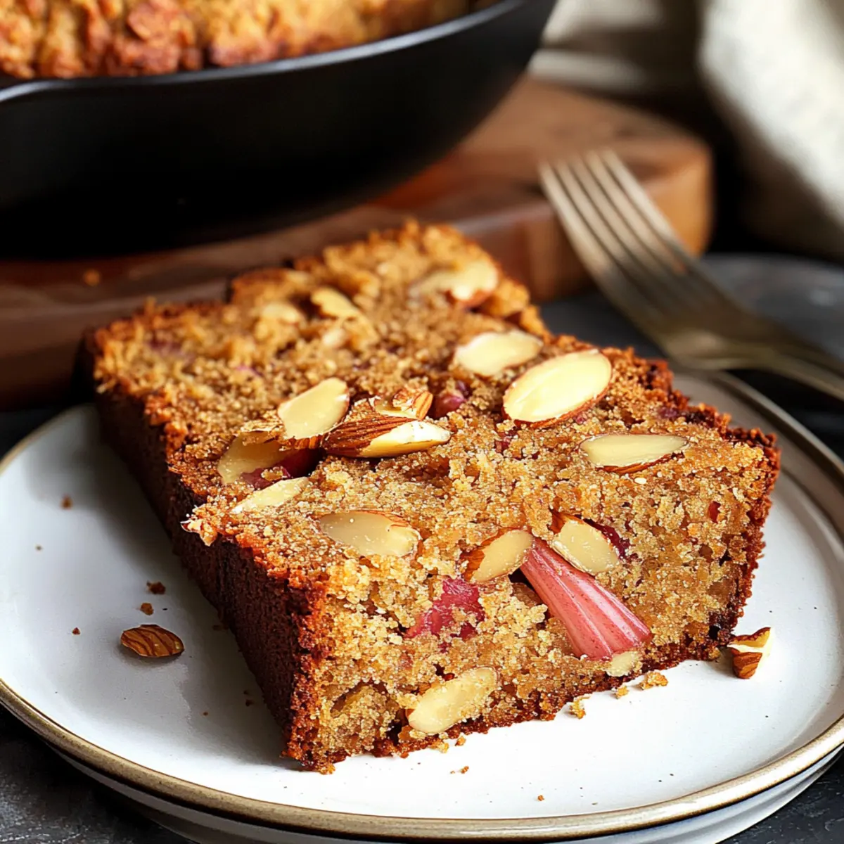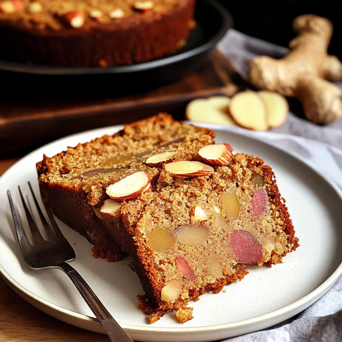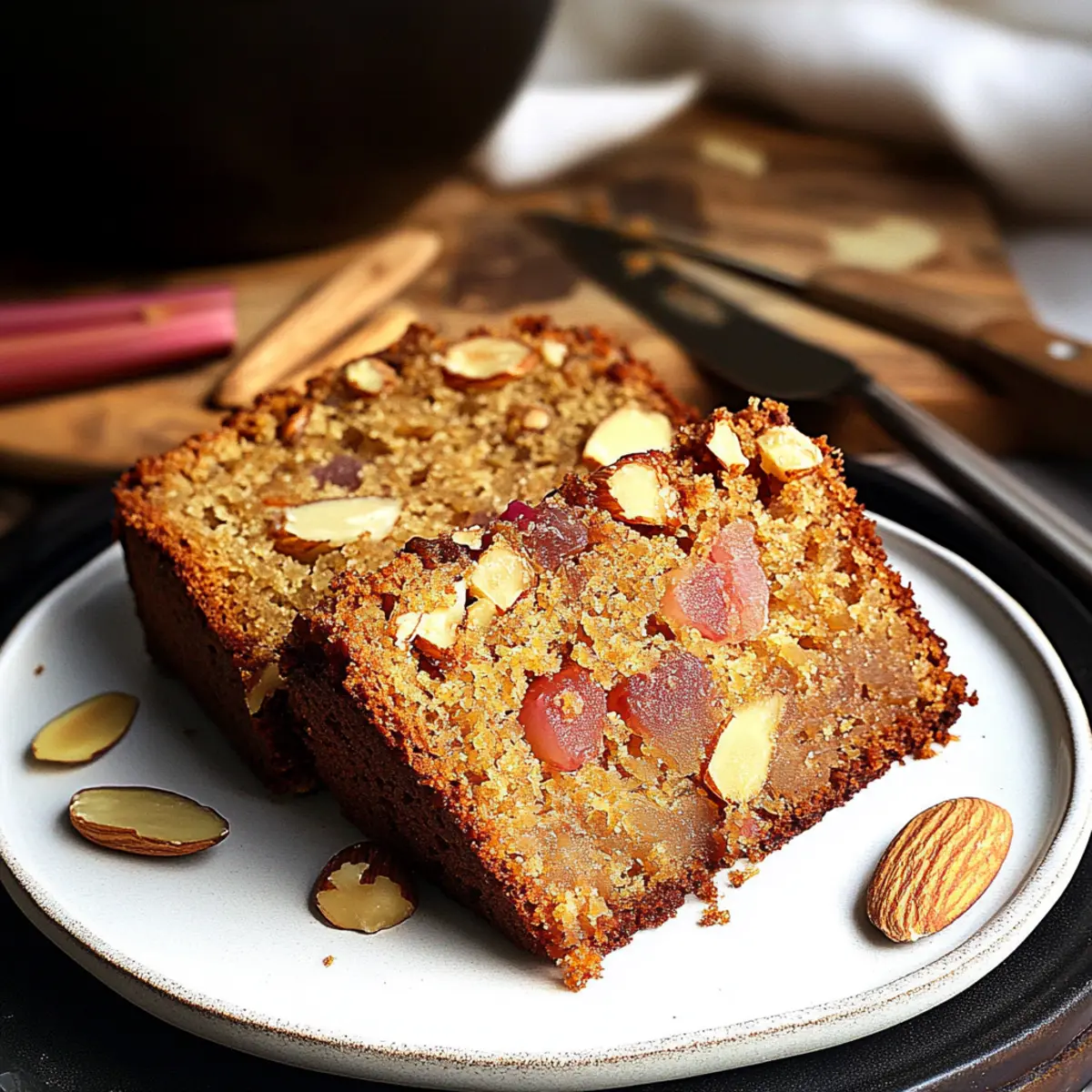 Moist Rhubarb & Ginger Cake with a Crunchy Almond Twist