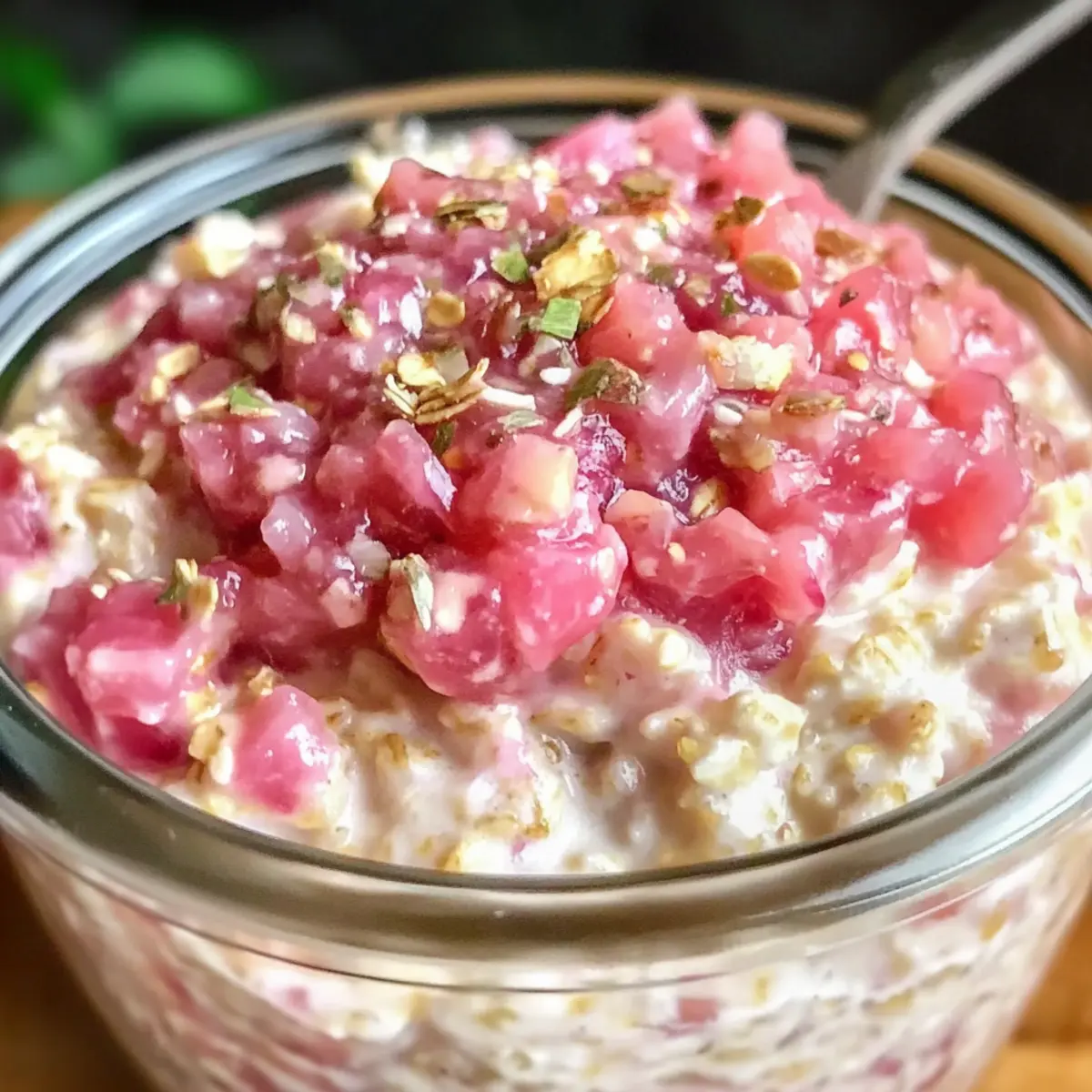 Serving Tips: Enjoy these delightful Rhubarb Overnight Oats cold or warm, and feel free to add toppings right before serving for a fresh crunch!