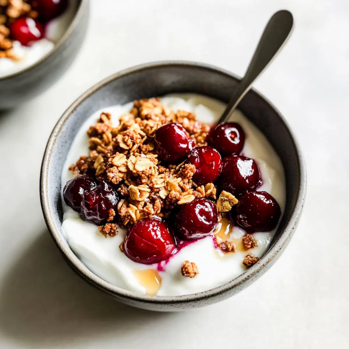 Elevate your morning routine with the fresh, sweet goodness of this Roasted Cherry Yogurt Bowl!