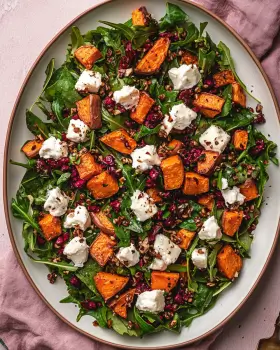 Roasted Sweet Potato and Goat Cheese Salad is a delightful dish that brings together a variety of flavors and textures. Its combination of sweet, savory, and tangy elements makes it a standout choice for any meal. Whether you’re enjoying it as a main course or a side dish, this salad is sure to please your taste buds.