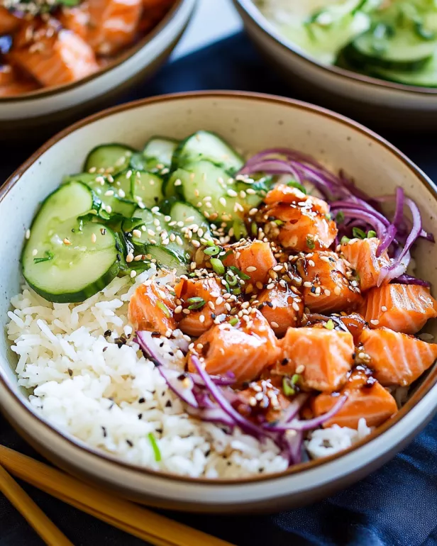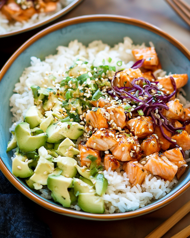 In conclusion, the Savory Salmon Rice Bowl is a delightful dish that combines flavor, nutrition, and versatility. With its tender salmon, fluffy jasmine rice, and vibrant vegetables, this recipe is sure to please everyone at the table. Whether you’re cooking for yourself or hosting a family dinner, this meal is both satisfying and easy to prepare.