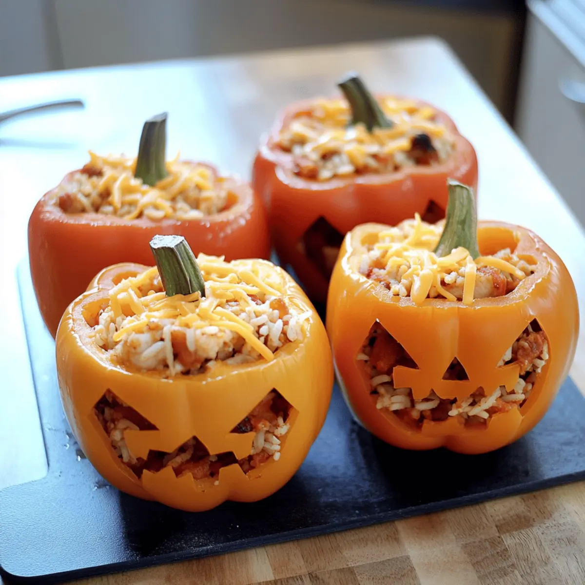 Shredded Chicken & Rice Stuffed Peppers for a Spooky Feast