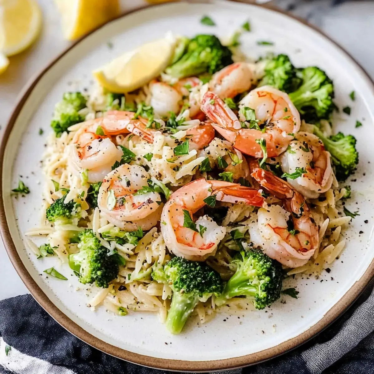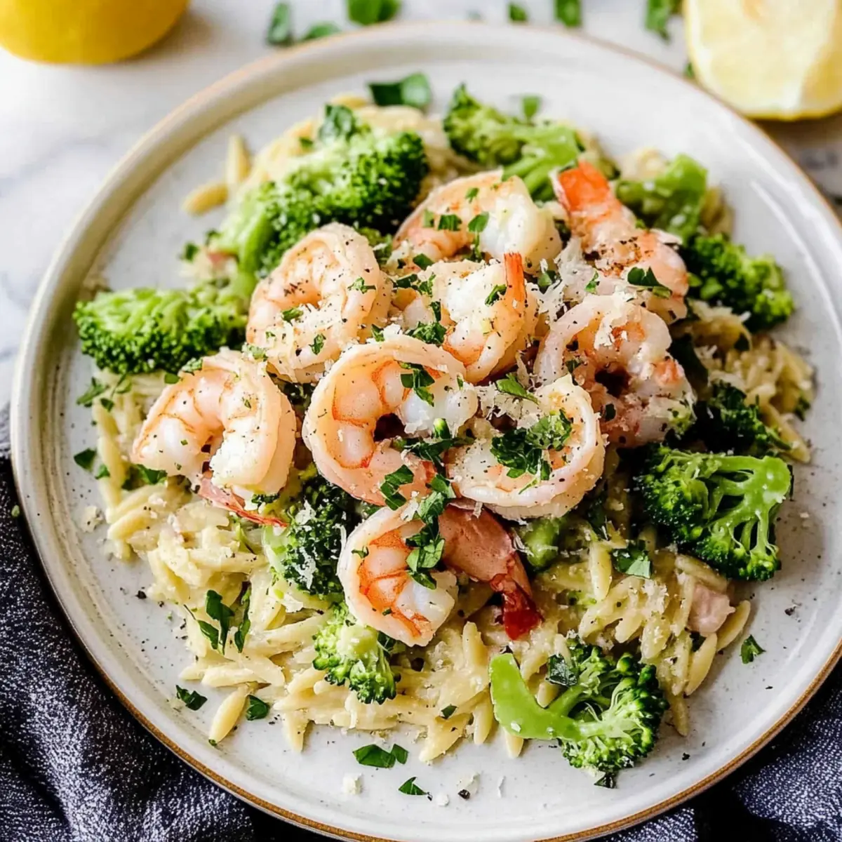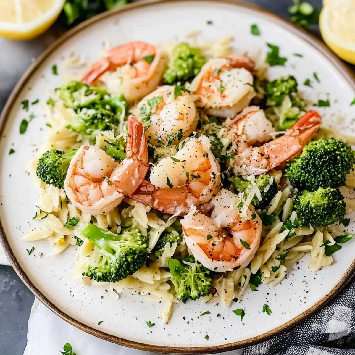 Unforgettable Texture: Experience the satisfying contrast of plump shrimp and creamy orzo, punctuated by fresh broccoli for a colorful touch.