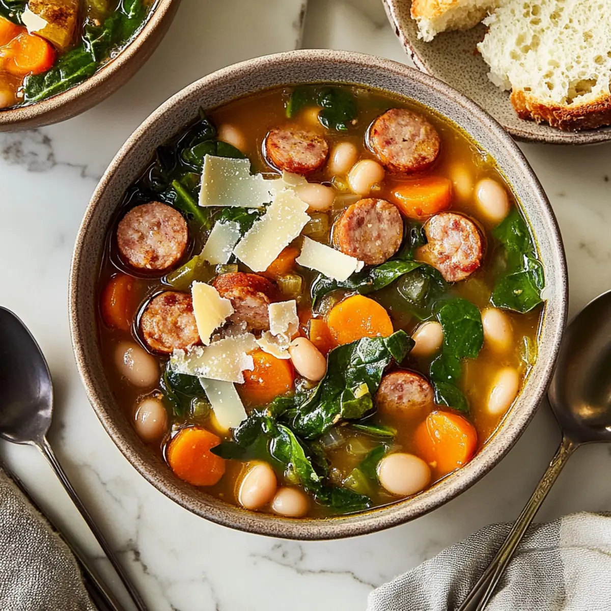 This Slow Cooker Sausage, Spinach and White Bean Soup combines savory sausage, vibrant spinach, and creamy beans for a warm, hearty meal.