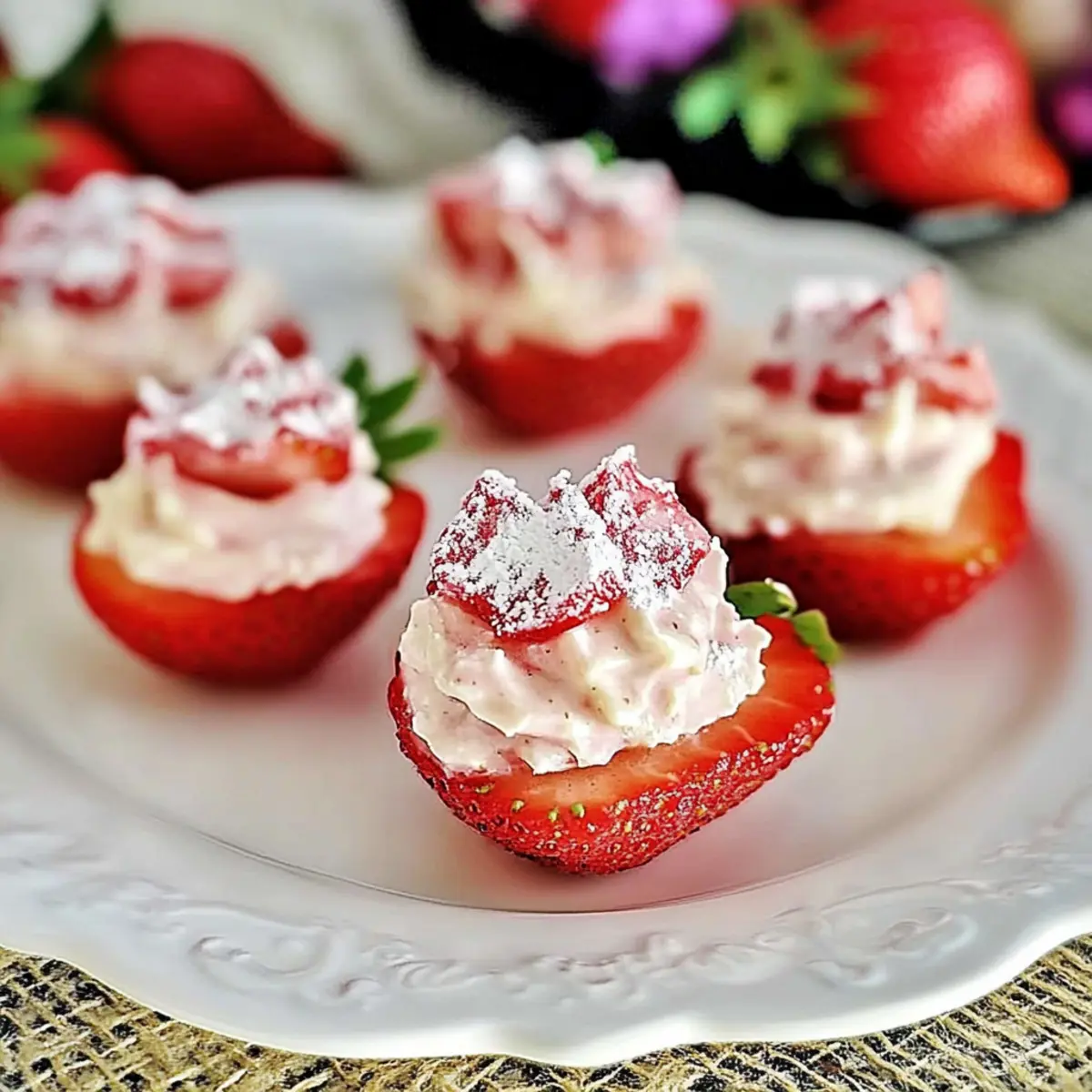 Delightful Strawberry Cheesecake Strawberry Bites offer a light dessert option for gatherings with a creamy filling and fresh strawberries.
