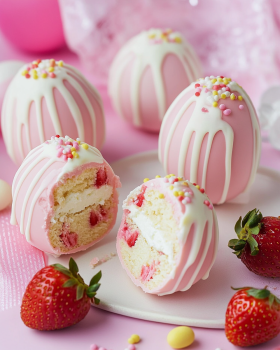 These aren’t just ordinary truffles or chocolates—they bring the flavors of traditional strawberry shortcake into a fun Easter egg shape.