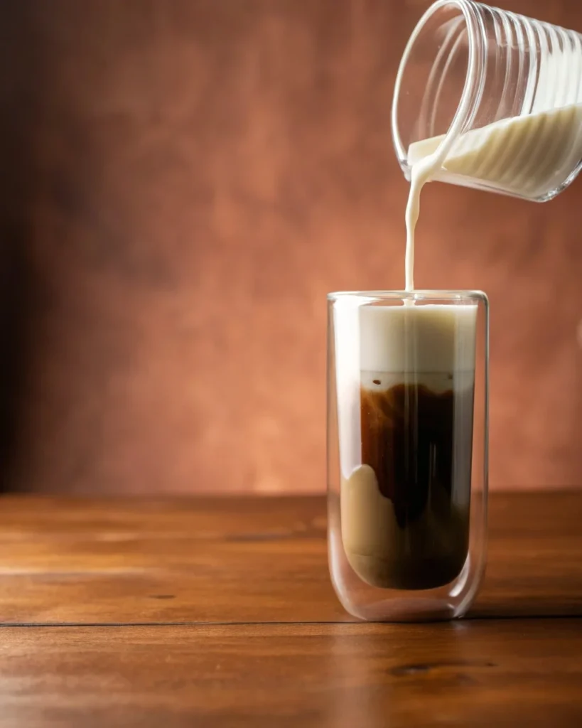 - Pour in milk and add ice for an iced latte.