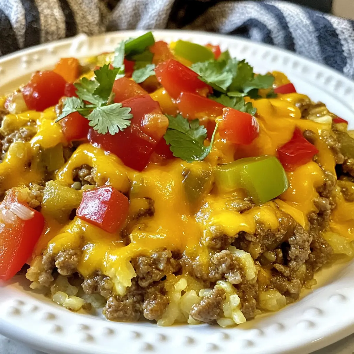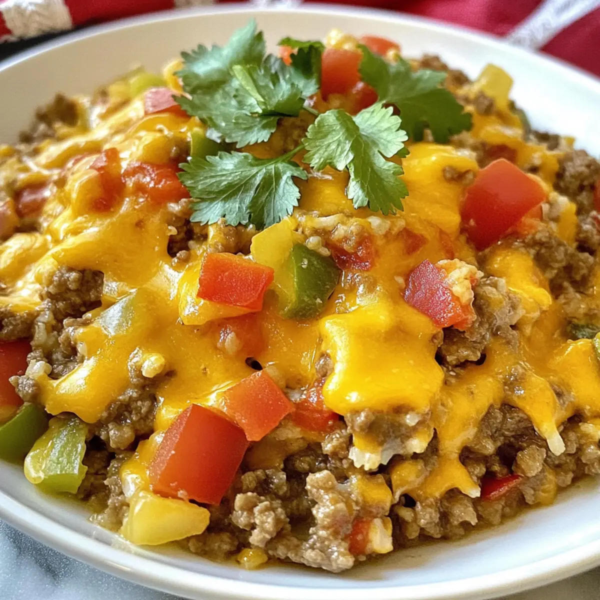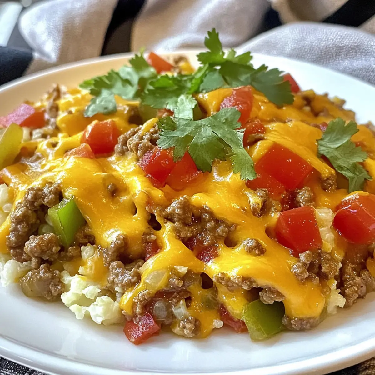 The aroma of sizzling beef and melting cheese wafts through my kitchen, instantly taking me back to those cozy family dinners. Today, I’m excited to share my Cheesy Taco Ground Beef & Cauliflower Rice Skillet—a delightful one-pan meal that’s not just low-carb, but also a quick solution for hectic weeknights. With minimal prep and clean-up, you can whip up this hearty dish in no time, making it a perfect option for anyone tired of fast food. Every bite delivers a satisfying blend of savory flavors, and the cauliflower rice makes it a guilt-free indulgence. Plus, you have the freedom to customize it to your taste, whether that means switching up the veggies or adjusting the spice level. Curious about how to create this enticing dish? Let’s dive in!