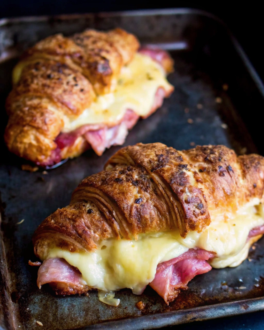 - Bake the croissants for 26–27 minutes, or until they are deeply golden brown and the ham becomes slightly caramelized around the edges.