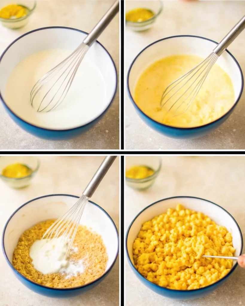 - Gradually whisk in heavy cream and milk to create a smooth base.