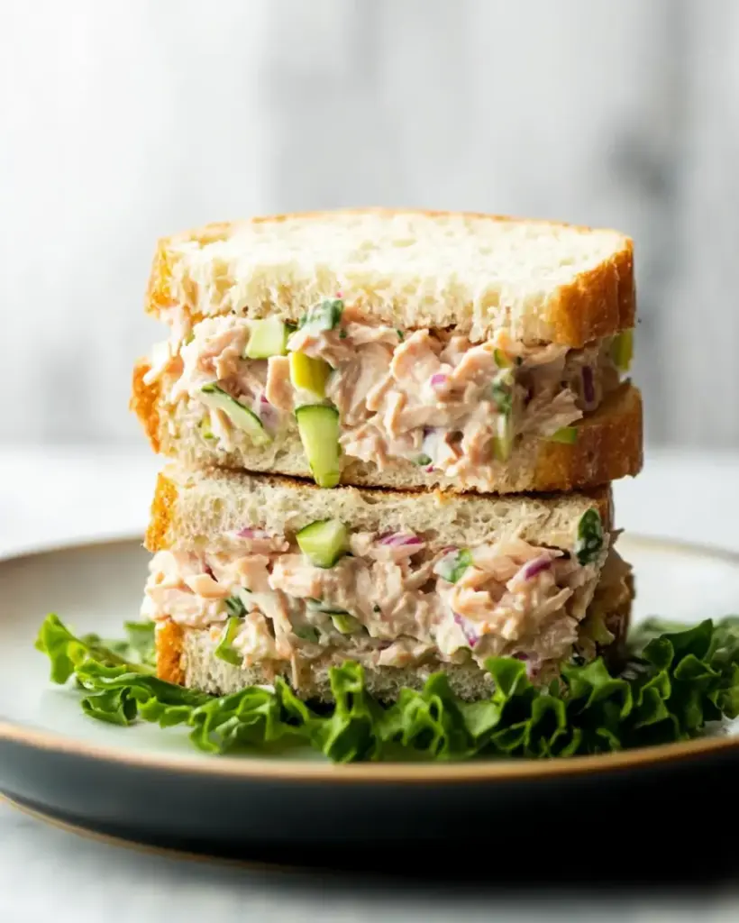 If you’re in the mood for something more filling, consider making a sandwich. Spread the tuna salad between two slices of whole-grain or sourdough bread. You can add slices of tomato, cucumber, or even some cheese for extra flavor. This makes for a satisfying lunch or dinner option!