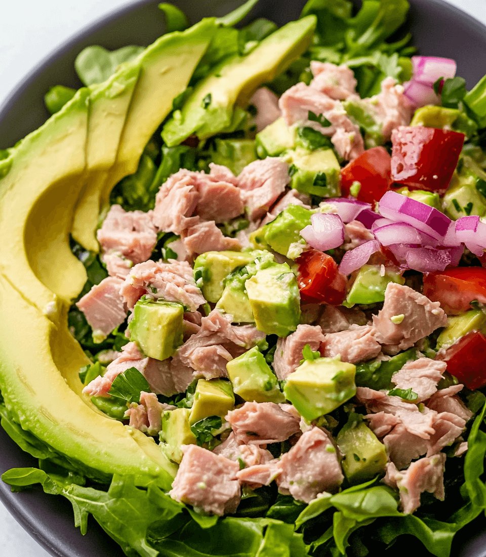 A quick and healthy Tuna Salad with Avocado recipe that combines nutritious ingredients for a delicious meal.