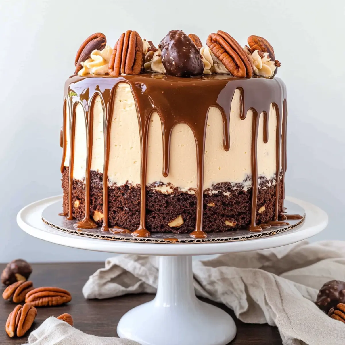 Layer Evenly: Use a kitchen scale to distribute batter evenly into cake pans; this helps achieve a perfectly balanced Turtles Cake.