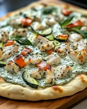 PrintTzatziki Chicken & Veggie Naan Pizza: A Flavorful Twist!