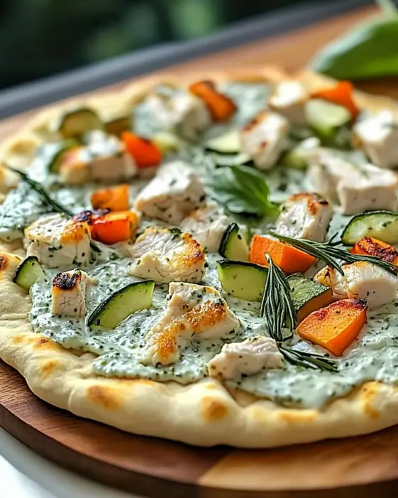 Once your pizza is out of the oven, let it cool for a minute. If you’re feeling fancy, garnish with fresh dill for that extra pop of flavor. Slice into wedges and serve warm. Your Tzatziki Chicken & Veggie Naan Pizza is ready to impress!