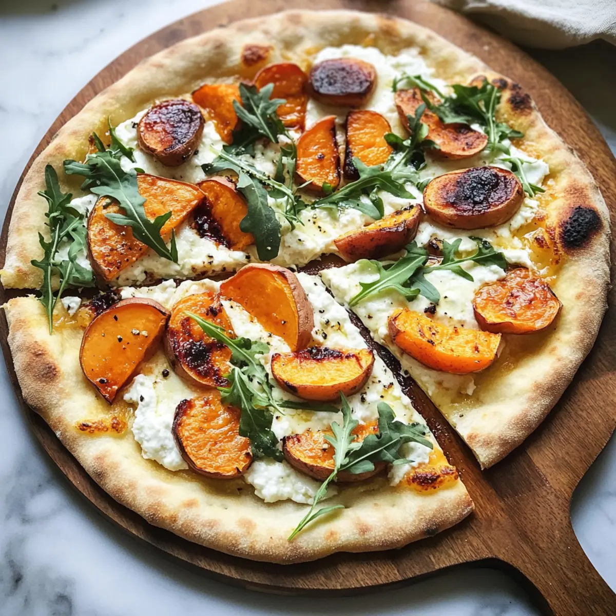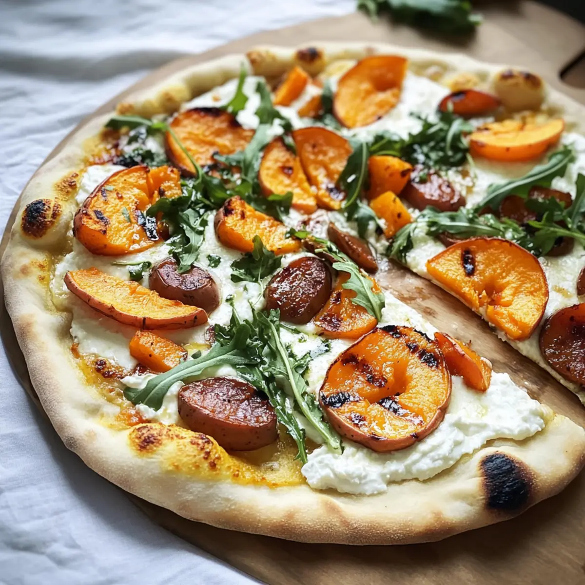 The aroma of roasted sweet potatoes fills the kitchen, making my heart flutter with anticipation. As I prepare to create this Savory White Pizza with Roasted Sweet Potatoes, Grilled Peaches & Arugula, I can already picture the smiles around the dinner table. This recipe combines the creamy goodness of ricotta with earthy sweet potatoes and the unexpected sweetness of grilled peaches, resulting in a dish that’s both comforting and visually stunning. Whether you’re looking for a quick weeknight meal or a show-stopping centerpiece for a gathering, this pizza is your answer. It’s not only customizable to suit your taste but also vegetarian-friendly, making it a crowd-pleaser that everyone can enjoy. Ready to elevate your pizza night? Let’s dive in and explore the delightful layers of flavor together!