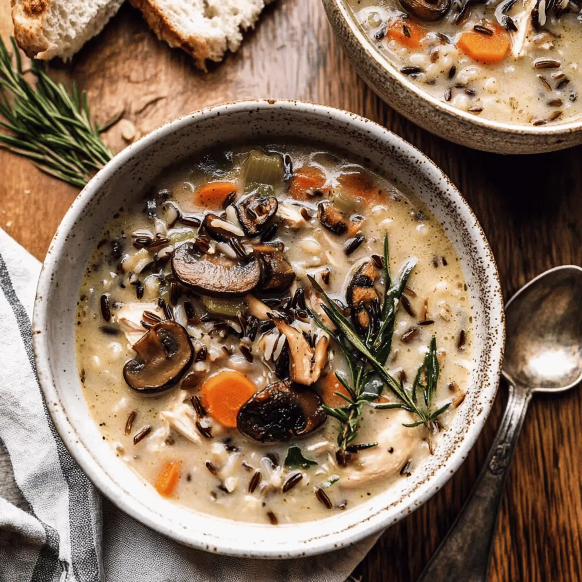 Hearty Wild Rice Chicken Soup with Roasted Mushrooms Delight