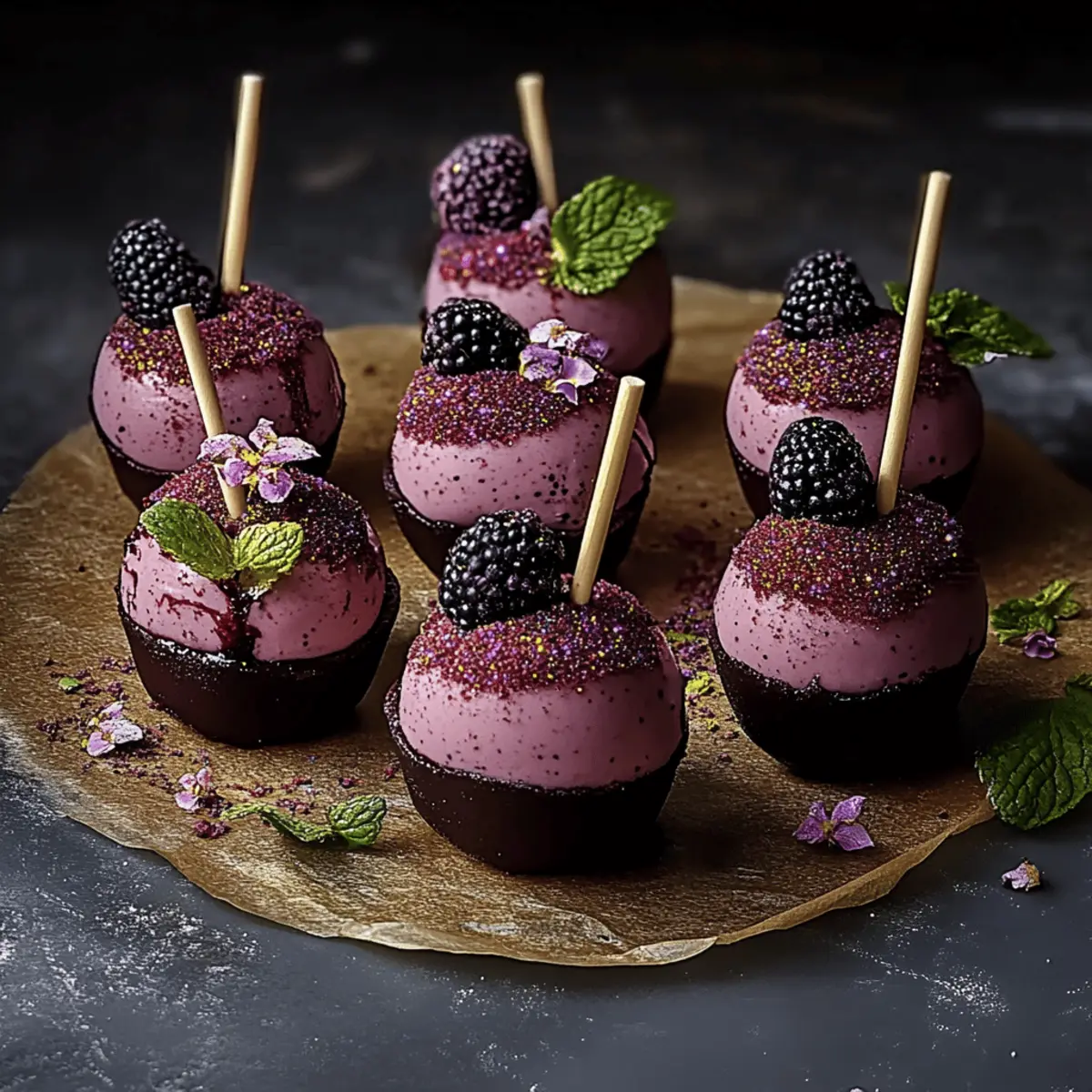 - Sprinkle with edible glitter or crushed graham crackers before chocolate sets. Drizzle with remaining blackberry compote if desired. Chill for 15–20 minutes before serving.