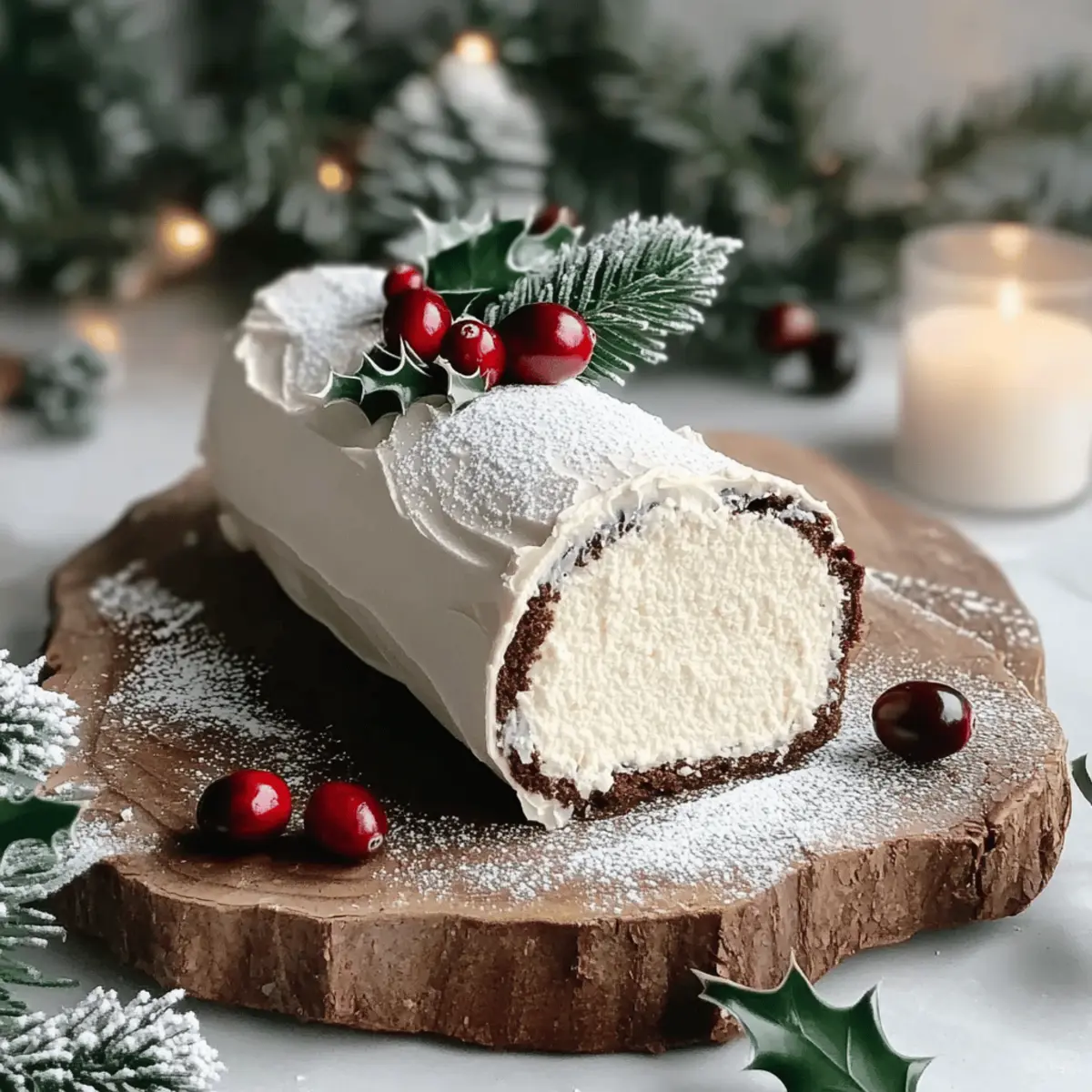 Indulge in a Festive Vegan Yule Log with White Chocolate Frosting