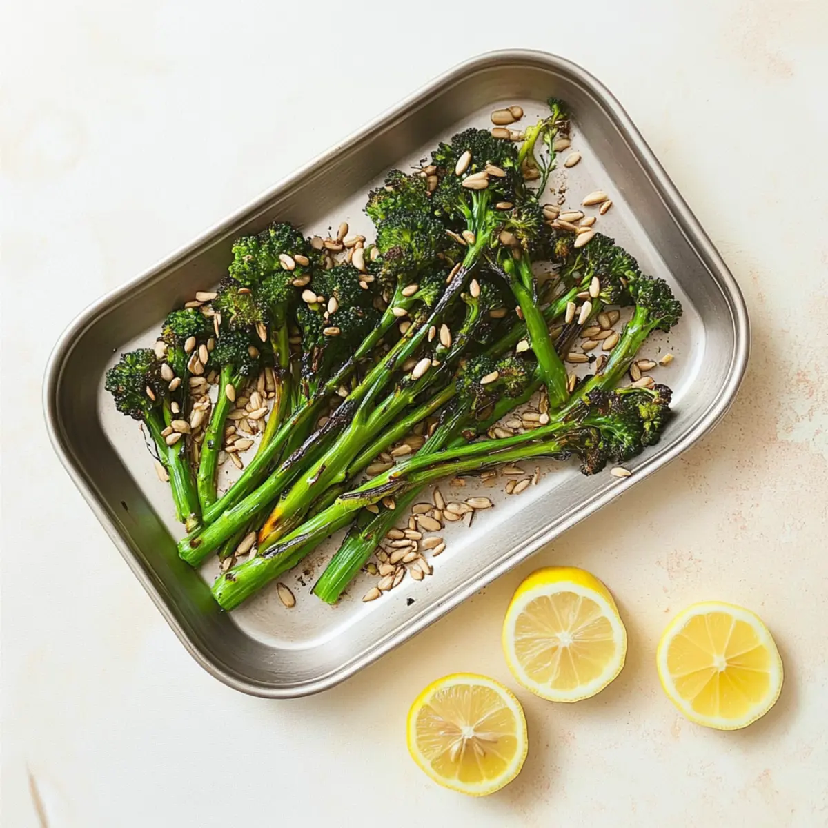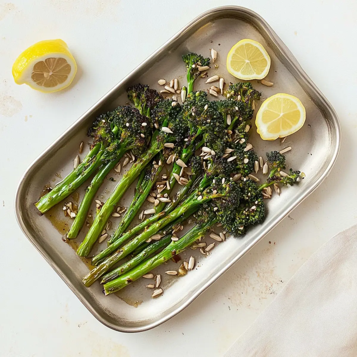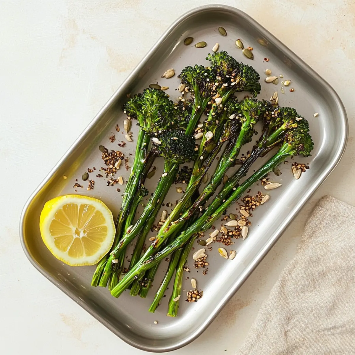 To finish off your masterpiece, squeeze a fresh lemon juice over the broccolini for a refreshing zing. For an extra crunch, sprinkle sunflower and pumpkin seeds on top before serving. This final touch adds delightful texture and nutrition, making your Zesty Chargrilled Broccolini not just a side dish, but a standout feature on your table.